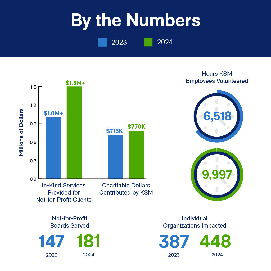 3. A carousel created for Linkedin with highlights from KSM's 2024 Community Impact report.